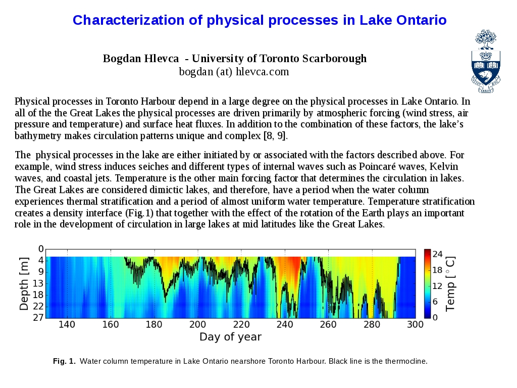 3) At U of T our aim was to characterize physical processes and understand the causes of temperature variability and currents, which are factors that can influence water quality and selection of habitat.