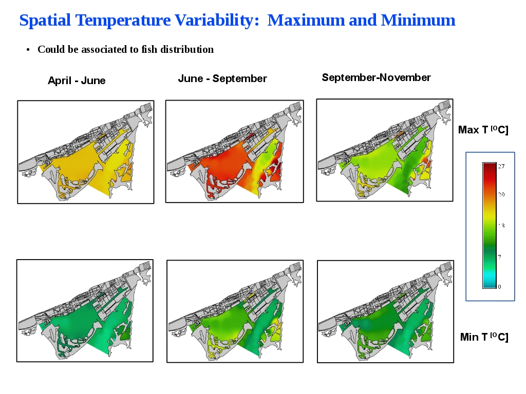 ●A relatively uniform spatial distribution during the pre-stratified season with just signs of warming in the shallow sheltered areas.