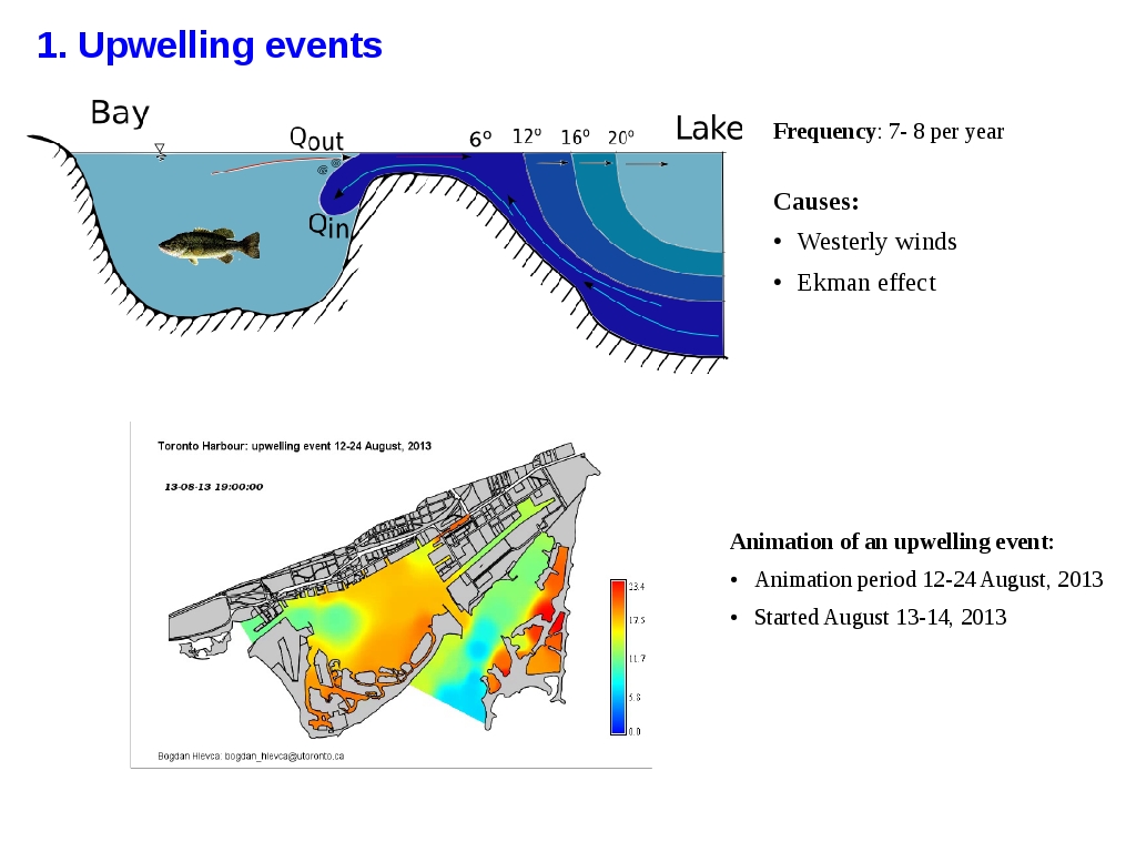 On the northern shore of Lake Ontario the predominantly westerly winds coupled with the Ekman spiral effect create frequent upwelling events.